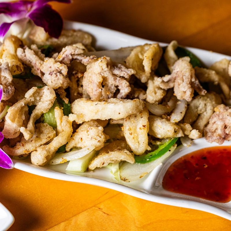 Lightly battered squid tossed in jalapeno, salt & pepper