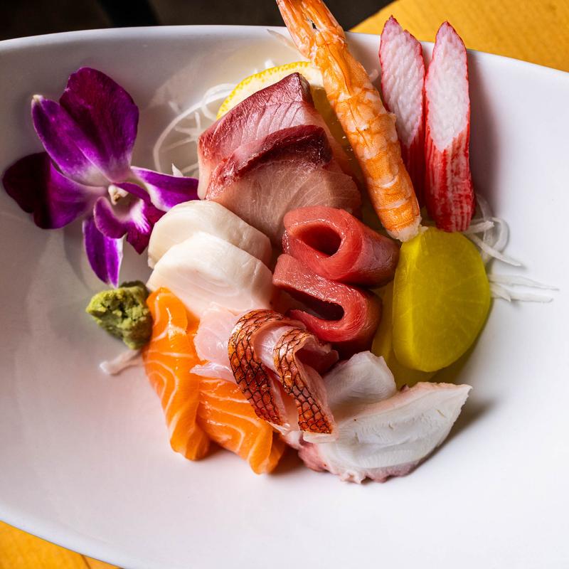 A premium selection of expertly sliced raw fish, featuring a variety of textures and flavors. Served without rice to highlight the purity and freshness of each cut-ideal for sashimi lovers. Assortment of premium sashimi